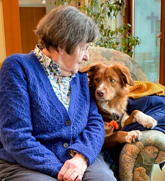 Wir freuen uns sehr, Christine Gottschalk, unsere langjährige Ehrenamtliche, als neue Patin im Caritas Haus St. Laurentius vorstellen und begrüßen zu dürfen. Sie wird ab 12.02.2026 wöchentlich für 1-2 Stunden nachmittags den Bewohnerinnen und Bewohnern sowie den Angehörigen für leichte und schwere Gespräche zur Verfügung stehen. Der -Haushund- Ella lebt seit über 1 Jahr in der Einrichtung und ist 2 ½ Jahre alt. Er gehört der PDL Sylvia Lorenz und wird Christine Gottschalk unterstützen. Wir wünschen Christine alles Gute für ihre neue Aufgabe.
